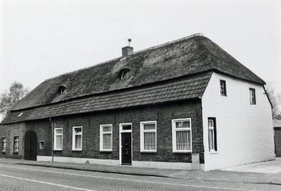 Baksteen met vlechtingen. Gepleisterde plint. Rechte steekankers. Vensters vernieuwd. Paneeldeur. Wolfdak, riet met voet van dakpannen. Historisch structuurelement. | Baksteen met vlechtingen. Gepleisterde plint. Rechte steekankers. Vensters vernieuwd. Paneeldeur. <br> | ||