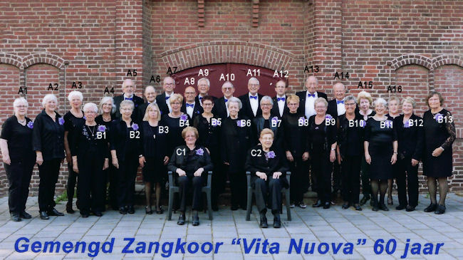 Groepsfoto van zangvereniging Vita Nuova tijdens het 60-jarig bestaan.