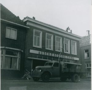 Vrachtwagen van Van Engeland voor kledingzaak Ausems.