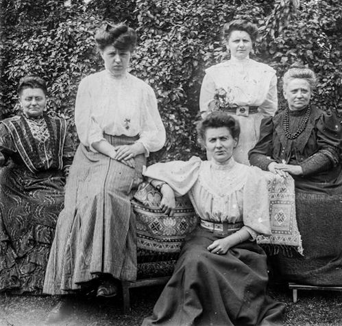 Dames Bolsius in de tuin van Huize Nieuwegaard.