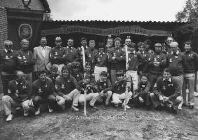 Rij A: 1. Harrie van den Heuvel, 2. Toon van den Brand, 3. Broer Manders, 4. Egon Manders, 5. Jo van Alebeek, 6. Andre van den Boogaard, 7. Andre van den Heuvel, 8. Diana Smits, 9. Daniëlle Fassbender, 10. Harrie Lauwerensen 11. Johan Sanders, 12. Patrick Fassbender, 13. Bert van Oorschot, 14. Marcel Hermes, 15. Marjan van Bilsen, 16. M. Nooyen, 17. Mari van Boxtel, 18. Dorus van Aarle, 19. Theo van der Sangen, 20. Piet Pijnenburg, 21. H. van den Boogaard.