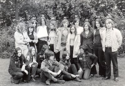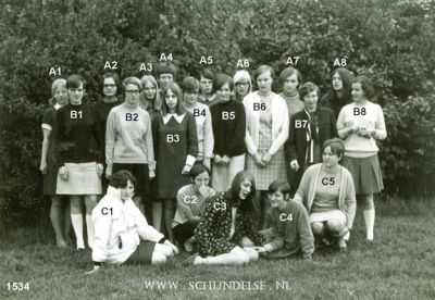 Rij C: 1. Onbekend, 2. Joke van den Dungen, 3. Berdy van Lankvelt (internaat), 4. Paulien Smits, 5. Onbekend, 6. Sjan Coppens (internaat), 7. Steenbakkers.