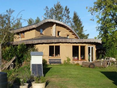 Het strobalen huis van de familie Simons in aanbouw op de Aakendonk.