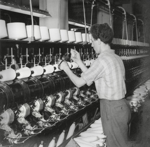 Garens wikkelen op andere spoelen in de fabriek van Jansen de Wit.