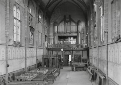 Het Moederhuis van de Zusters van Liefde aan de Pastoor van Erpstraat 1. Het beschadigde koor van de kloosterkapel.