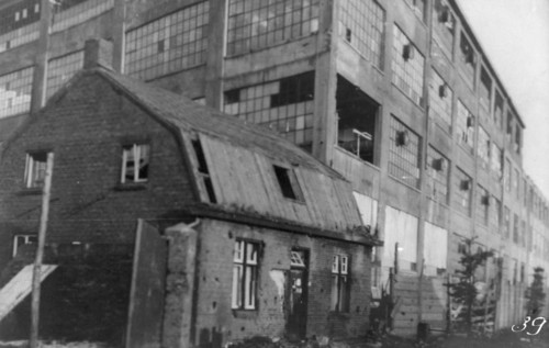 De gevel van de fabriek van Jansen de Wit aan de kant van de Heikantstraat.