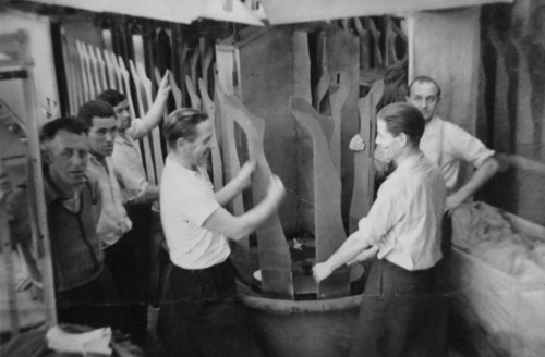 Werknemers in de vormerij van de fabriek van Jansen de Wit.